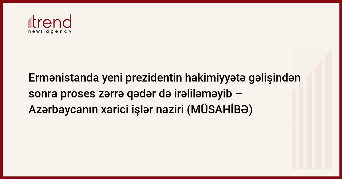 Biz sülh prosesində Ermənistanın keçmiş administrasiyası ilə çox şey əldə etmişik, hazırkı ilə isə heç nəyə nail olmamışıq. Mən danışıqlar aparan insan kimi mövcud məsələlərdə heç olmasa hansısa irəliləyişlər əldə etməyimizlə lovğalana bilmərəm.