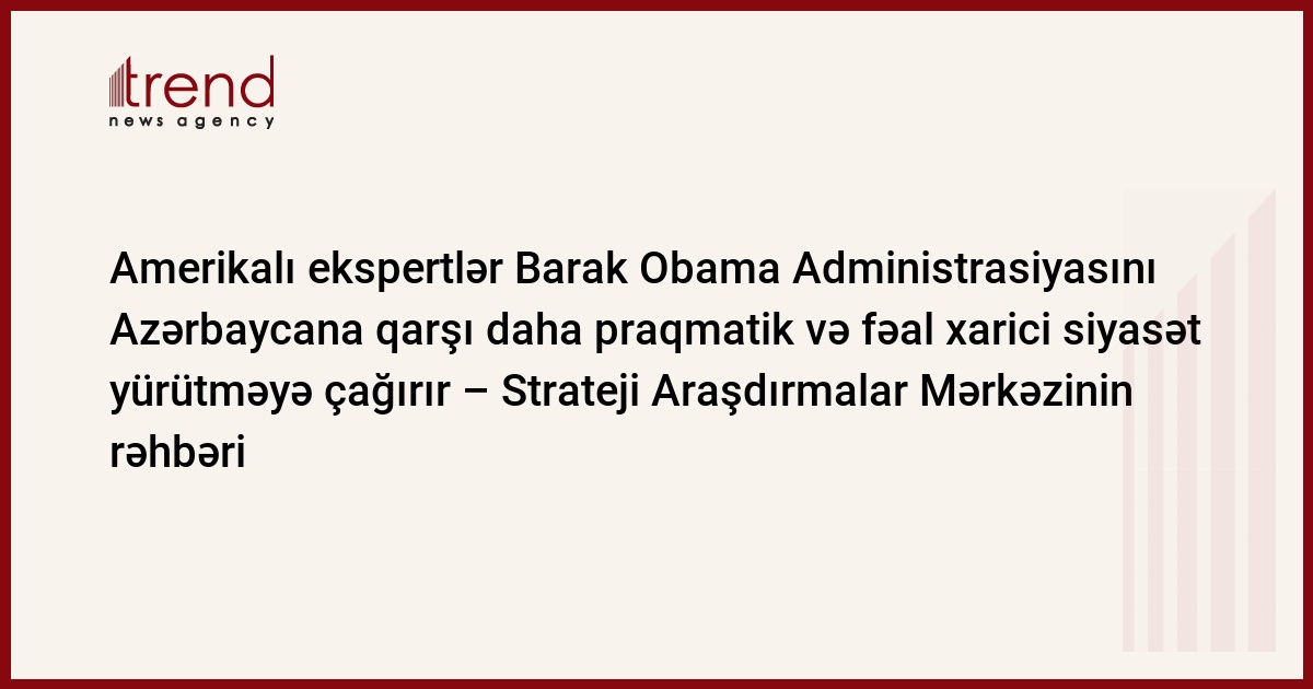 Amerika ekspertləri Barak Obama Administrasiyasını Azərbaycana qarşı daha praqmatik və fəal xarici siyasət yürütməyə çağırır. Bu barədə bazar ertəsi Azərbaycan Prezidenti yanında Strateji Araşdırmalar Mərkəzinin (SAM) rəhbəri Elxan Nuriyev jurnalistlərə deyib.