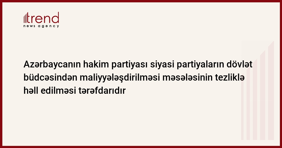 Azərbaycanın hakim partiyası "Siyasi partiyalar haqqında" qanuna əlavə və dəyişikliklərin tezliklə parlamentin müzakirəsinə çıxarılmasının tərəfdarıdır.