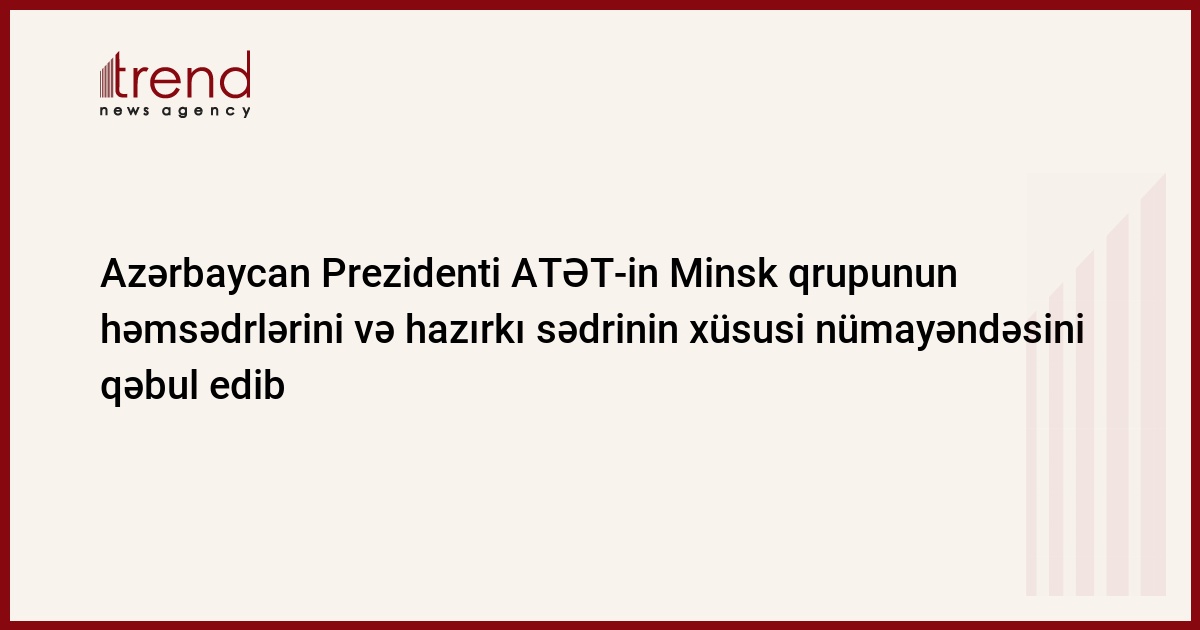 Azərbaycan Prezidenti İlham Əliyev cümə günü ATƏT-in Minsk qrupunun həmsədrləri Metyu Brayzanı (ABŞ), Bernar Fasyeni (Fransa), Yuri Merzlyakovu (Rusiya) və ATƏT-in hazırkı sədrinin xüsusi nümayəndəsi Anji Kaspşiki qəbul edib, məlumatı Prezidentin rəsmi saytı yayıb.