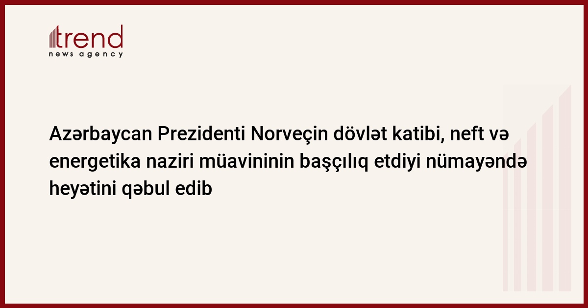 Azərbaycan Prezidenti İlham Əliyev çərşənbə axşamı Norveçin dövlət katibi, neft və energetika nazirinin müavini Robin Martin Kaasın başçılıq etdiyi nümayəndə heyətini qəbul edib. Məlumatı AzərTAc Dövlət İnformasiya Agentliyi yayıb.