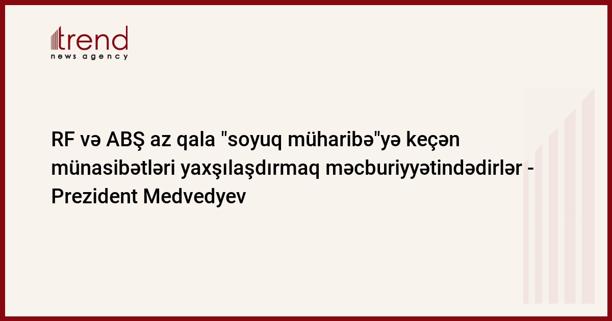 RF və ABŞ az qala "soyuq müharibə"yə keçən münasibətləri yaxşılaşdırmaq məcburiyyətindədirlər - Prezident Medvedyev