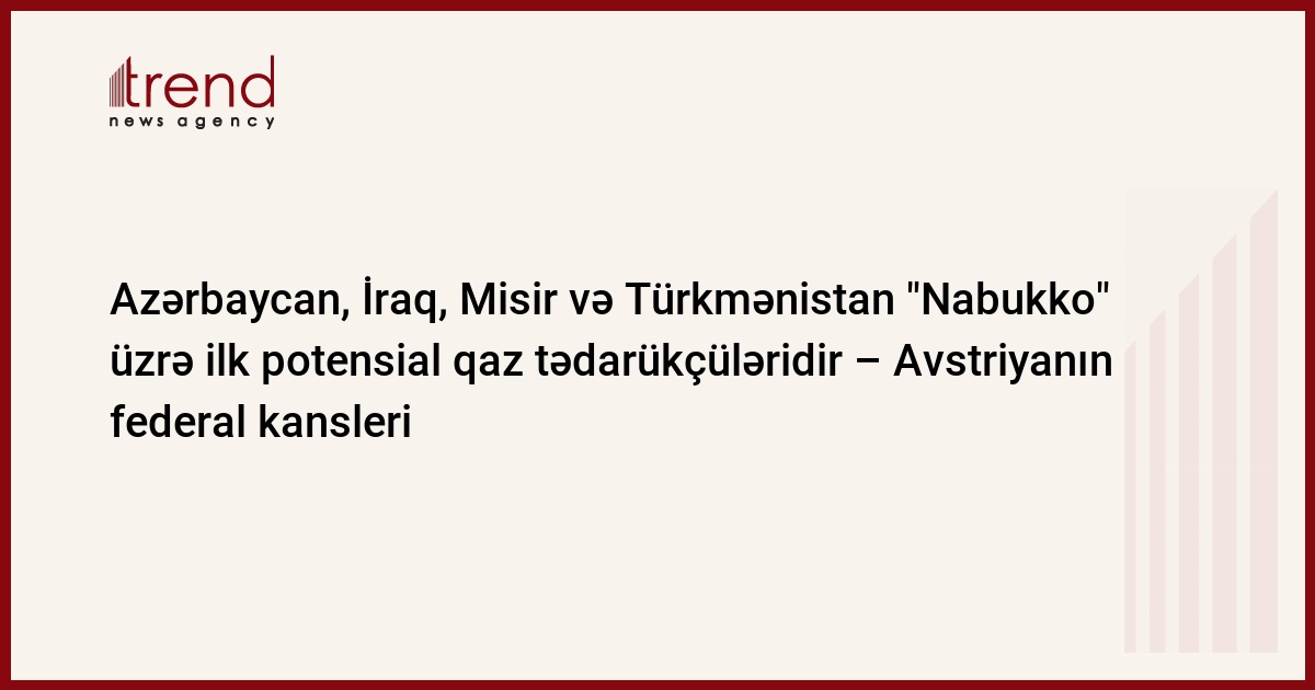 Avstriyanın federal kansleri Verner Fayman hesab edir ki, "Nabukko" layihəsinin həyata keçirilməsinin birinci mərhələsi çərçivəsində bu boru kəməri üçün potensial qaz tədarükçüsü dörd ölkə - Azərbaycan, İraq, Misir və Türkmənistan olacaq.