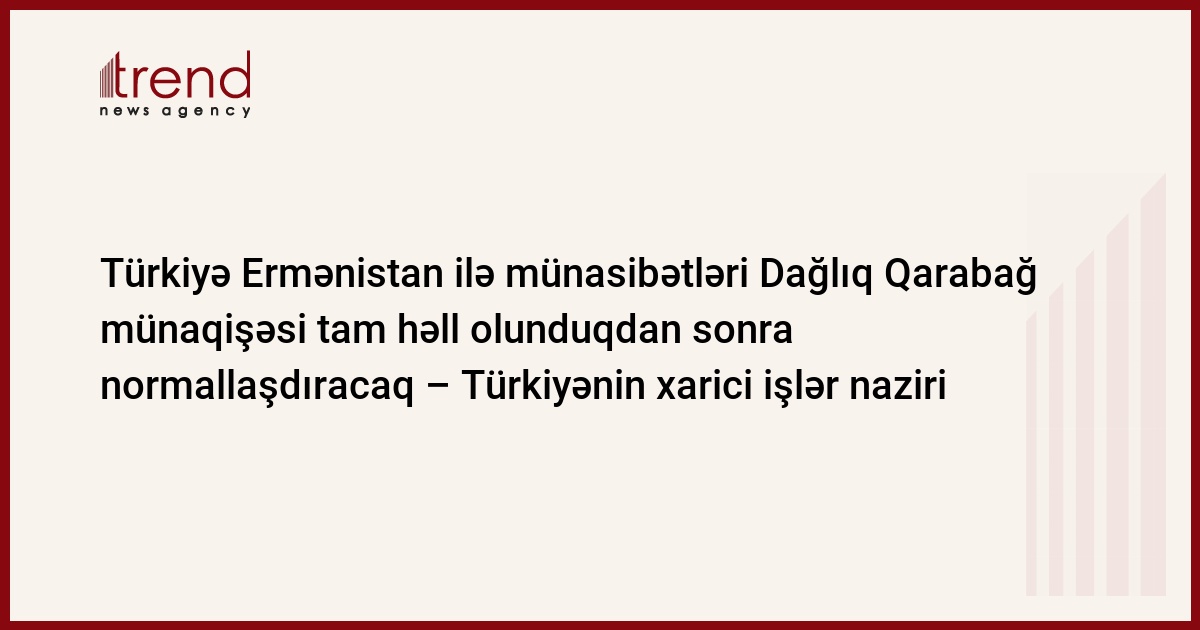 Türkiyə Ermənistan ilə münasibətləri Dağlıq Qarabağ münaqişəsi tam həll olunduqdan sonra normallaşdıracaq, Türkiyənin xarici işlər naziri Əhməd Davudoğlu bazar ertəsi Dəməşqdən Nikosiyaya uçuşu zamanı Reyter agentliyinə müsahibəsində bildirib.