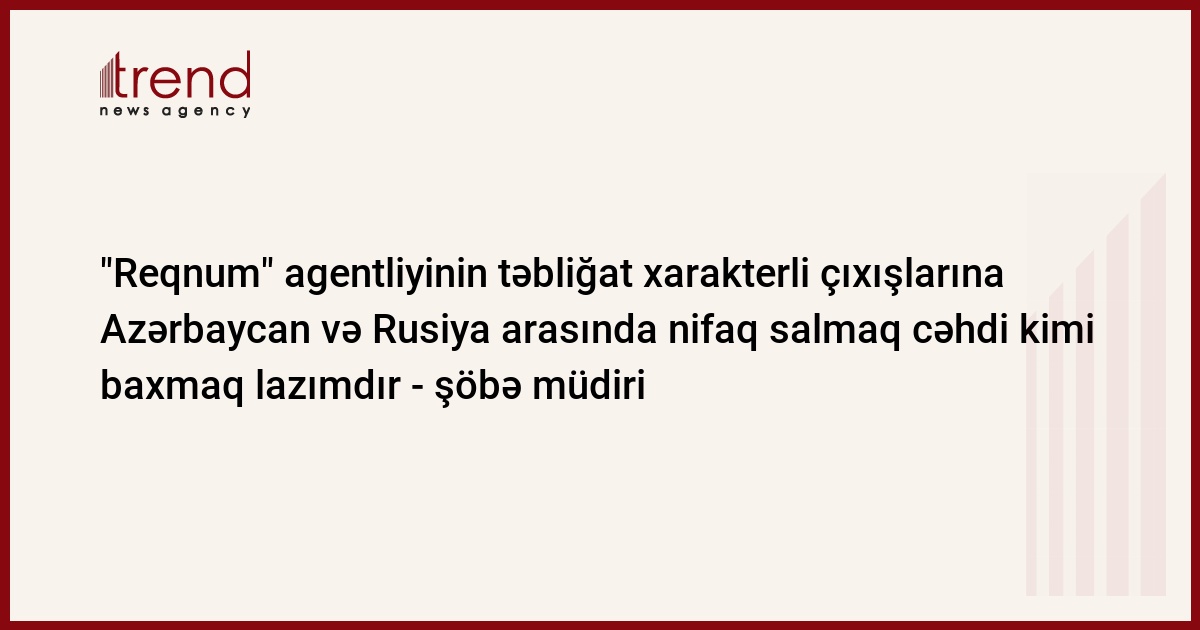 "Reqnum" informasiya agentliyi tez-tez özləri tərəfindən həyata keçirilən siyasət haqqında yanlış təsəvvürlər formalaşdıran yazılarla çıxış edir. Azərbaycan Prezidenti Administrasiyasının şöbə müdiri Elnur Aslanov, dünən Prezident İlham Əliyevin sədrliyi altında keçirilən Türkiyə-Ermənistan razılaşmasına dair iclas haqqında "Reqnum" agentliyinin sonuncu yazısına belə şərh verib.