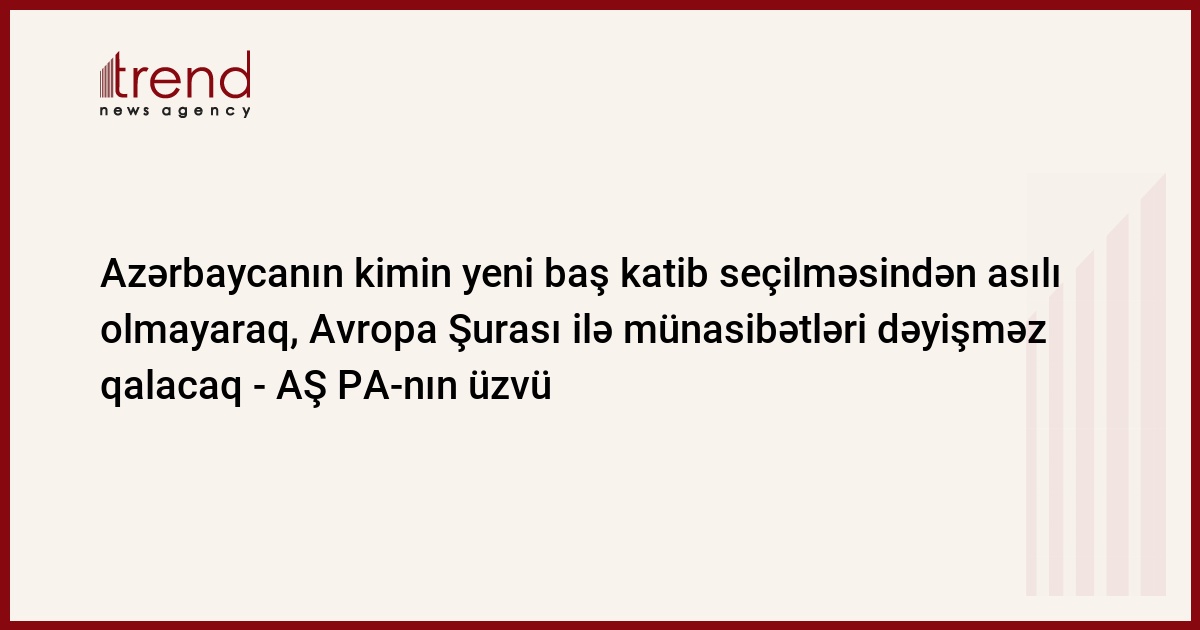 Azərbaycanın Avropa Şurasına kimin yeni baş katib seçilməsindən asılı olmayaraq, qurumla münasibətləri dəyişməz qalacaq.