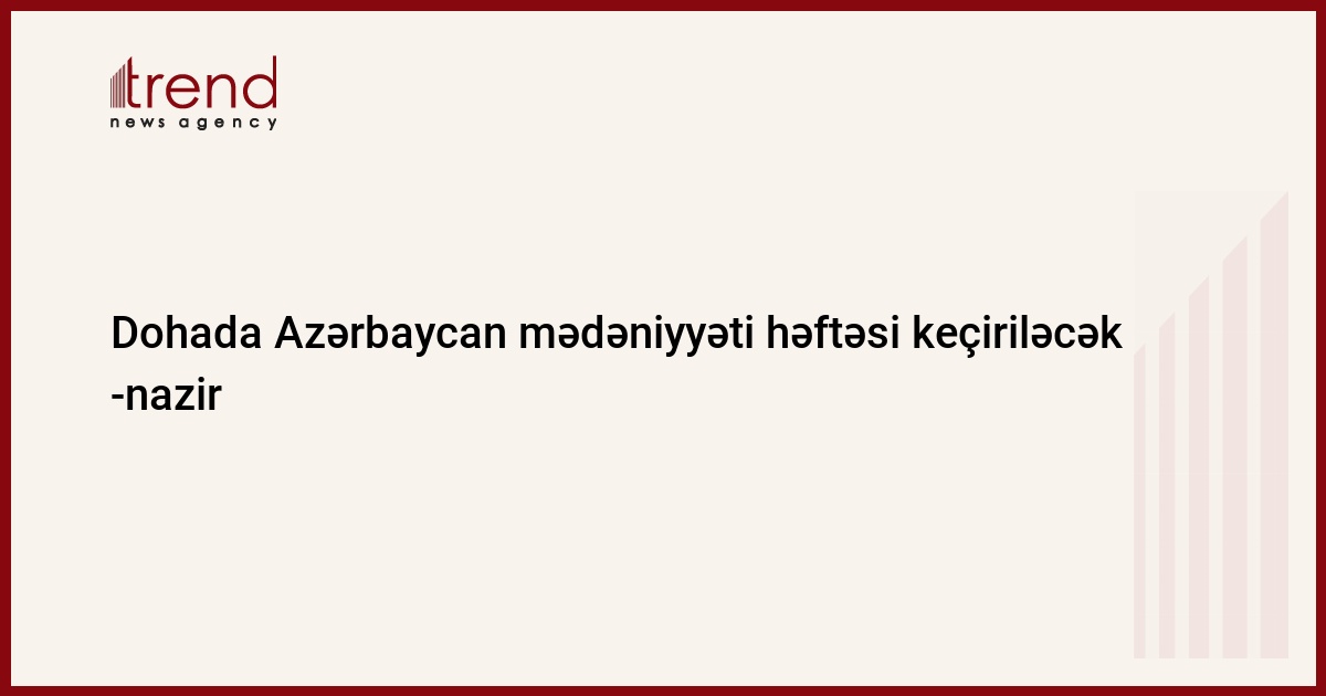 Növbəti ildə Qətərin paytaxtı Dohada Azərbaycan mədəniyyətinə həsr olunan həftə keçiriləcək, bu barədə Qətərin mədəniyyət naziri Həməd Bin Əbdül Əziz Əl-Kavari bildirib.