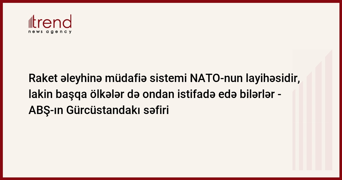 Raket əleyhinə müdafiə sistemi NATO-nun layihəsidir, bu da o deməkdir ki, NATO ilə əlaqəsi olan ölkələr də ondan istifadə edə bilərlər. Bu barədə ABŞ-ın Gürcüstandakı səfiri Con Bas Rustavi-2 telekanalına verdiyi müsahibəsində deyib.