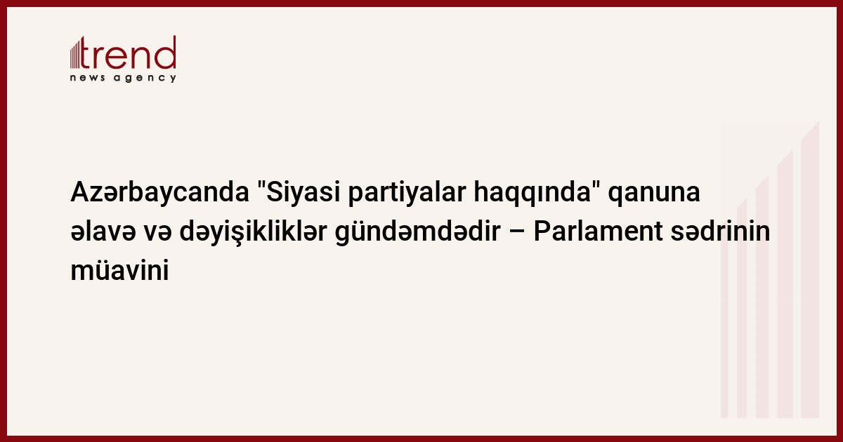 Azərbaycan Parlamentinin sədr müavini bildirib ki, "Siyasi partiyalar haqqında" qanuna əlavə və dəyişikliklər gündəmdədir.