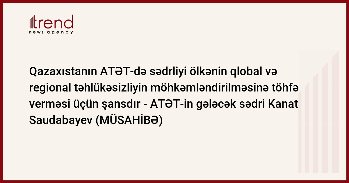 Trend -un Qazaxıstanın ATƏT-də sədrliyi ərəfəsində ölkənin dövlət katibi - xarici işlər naziri Kanat Saudabayevlə eksklüziv müsahibəsi
