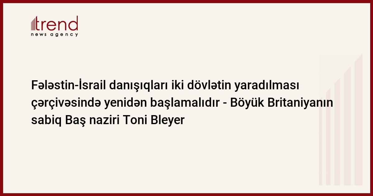 Fələstin-İsrail danışıqları iki xalq üçün iki dövlətin problemlərinin həlli çərçivəsində yenidən başlamalıdır. Böyük Britaniyanın sabiq Baş naziri Trend -un suallarına cavabında deyib.