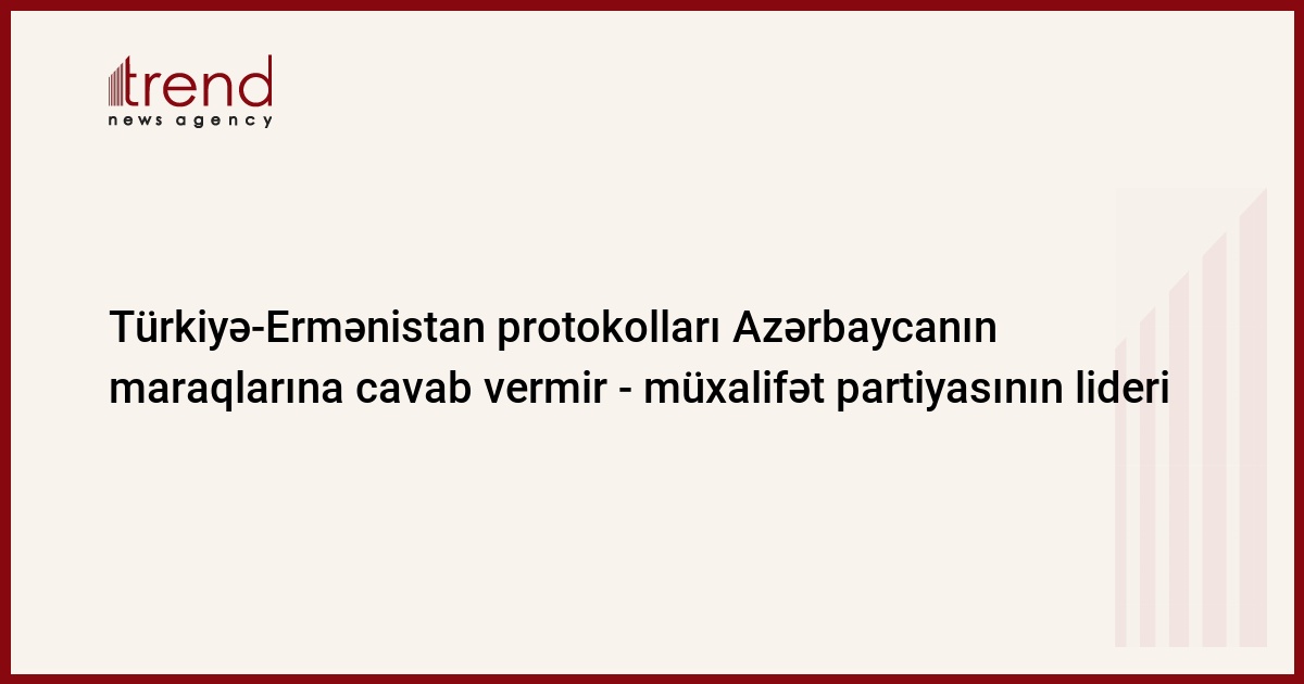 Azərbaycanın müxalifət partiyasının lideri Etibar Məmmədov hesab edir ki, Türkiyə-Ermənistan protokollarının imzalanması Azərbaycanın maraqlarına cavab vermir.