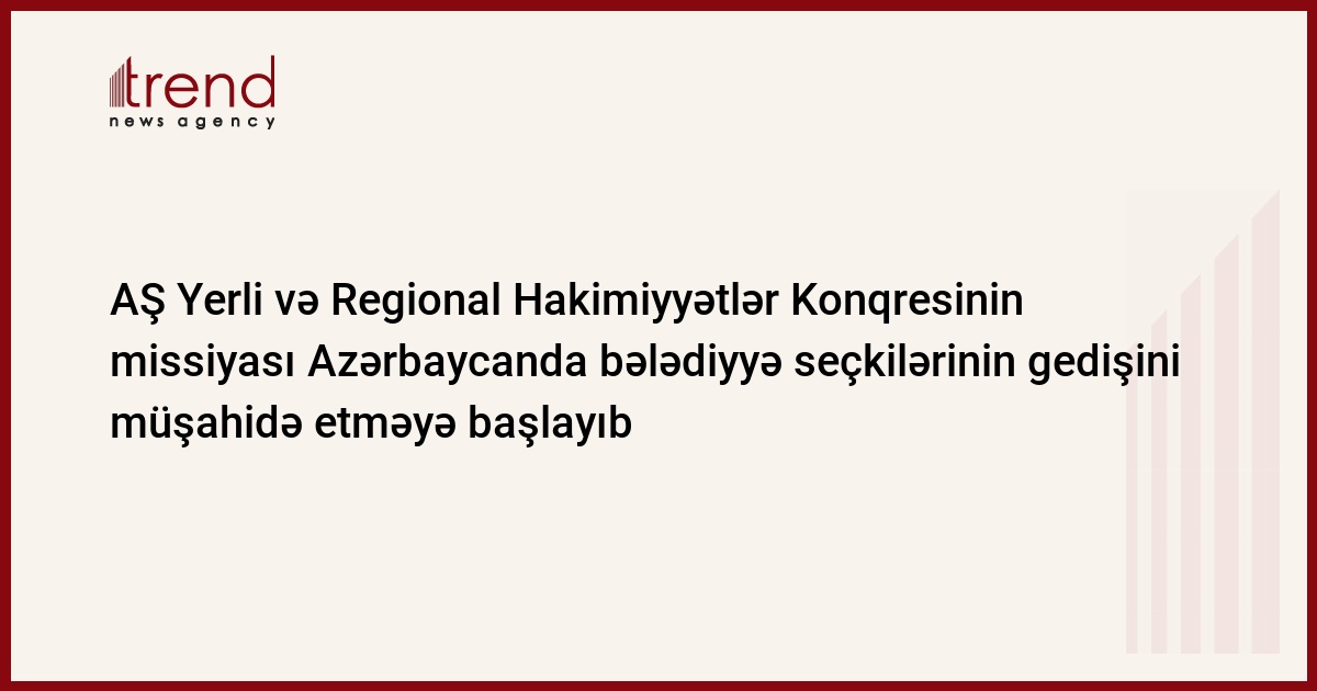 Avropa Şurası Yerli və Refgional Hakimiyyətlər Konqresinin missiyası Azərbaycanda bələdiyyə seçkilərinin gedişini müşahidə etməyə başlayıb.