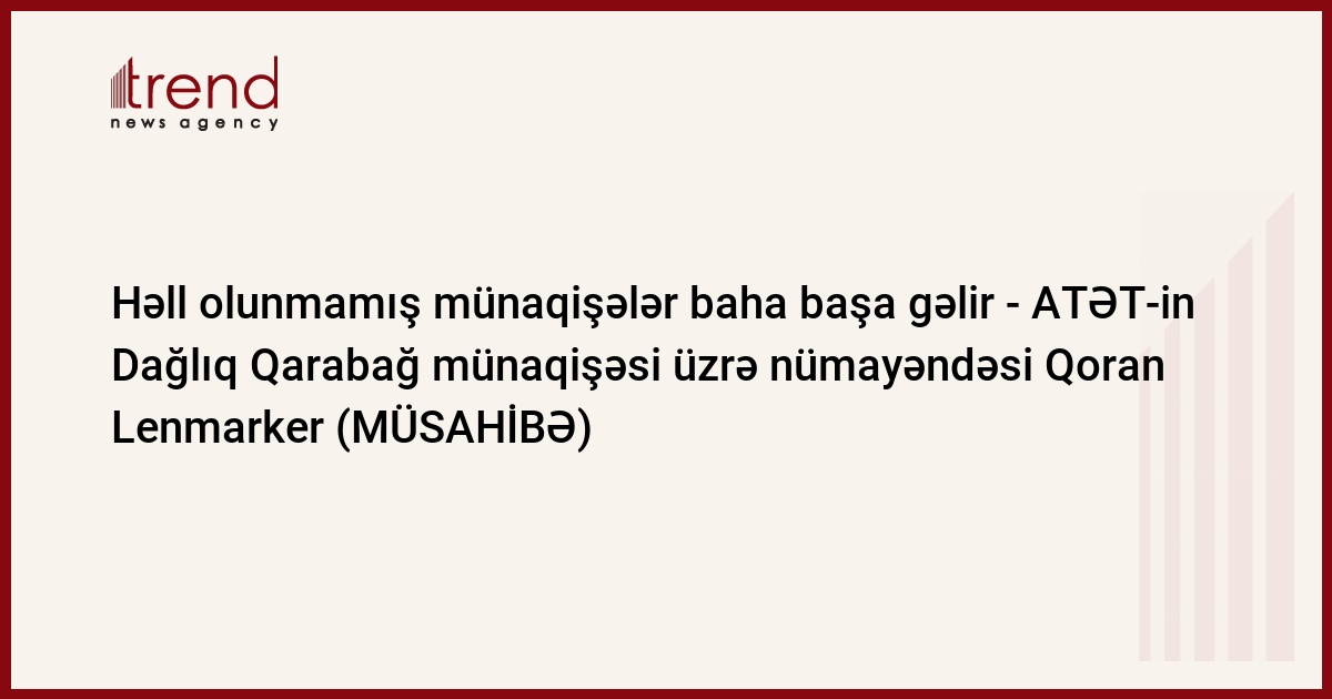 Trend -un ATƏT-in Dağlıq Qarabağ münaqişəsi üzrə xüsusi nümayəndəsi Qoran Lenmarkerlə onun martın 13-16-da Azərbaycana səfəri ərəfəsində eksklüziv müsahibəsi