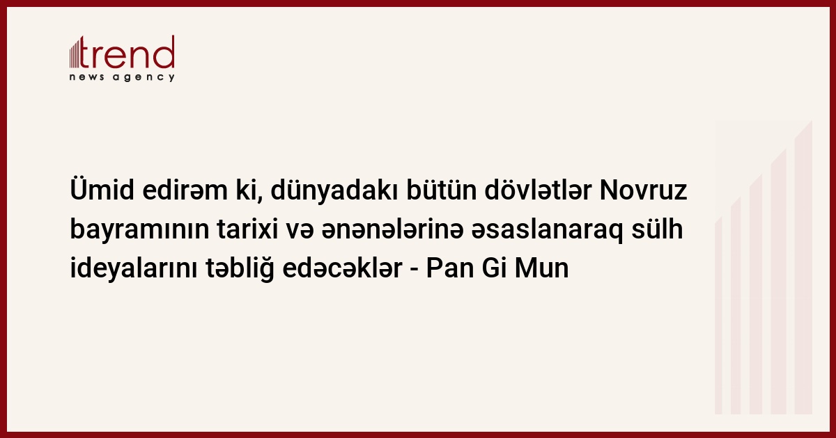 BMT-nin baş katibi Pan Gi Mun Novruz bayramı münasibətilə dünya xalqlarına müraciət edib.