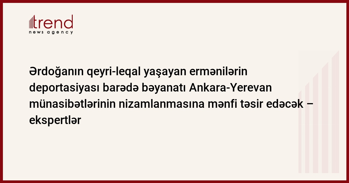 Baş nazir Rəcəb Tayyib Ərdoğanın Türkiyədə qeyri-leqal yaşayan 100 min erməni miqrantının ölkədən deportasiyası barədə bəyanatı Ankara-Yerevan münasibətlərinin normallaşması prosesinə mənfi təsir göstərəcək. Ekspertlər belə hesab edir.