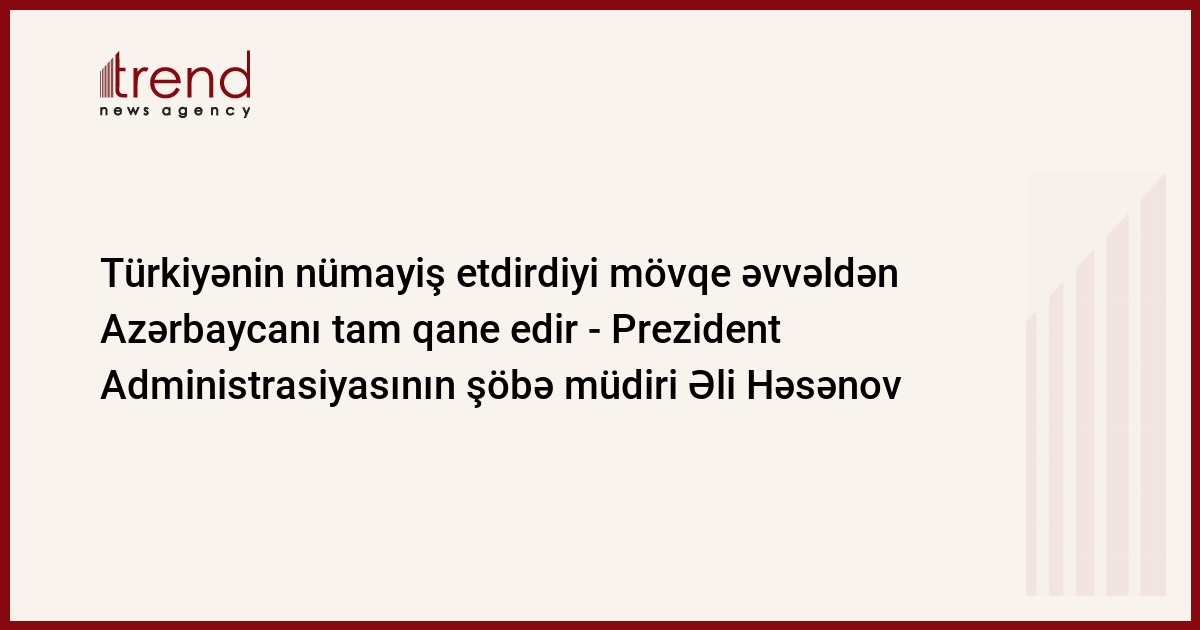 Türkiyənin nümayiş etdirdiyi mövqe Azərbaycanı tam qane edir, Türkiyə Azərbaycanın strateji tərəfdaşıdır. Trend-in məlumatına görə, bunu cümə axşamı jurnalistlərə Prezident Administrasiyasının ictimai-siyasi məsələlər şöbəsinin müdiri Əli Həsənov bildirib.