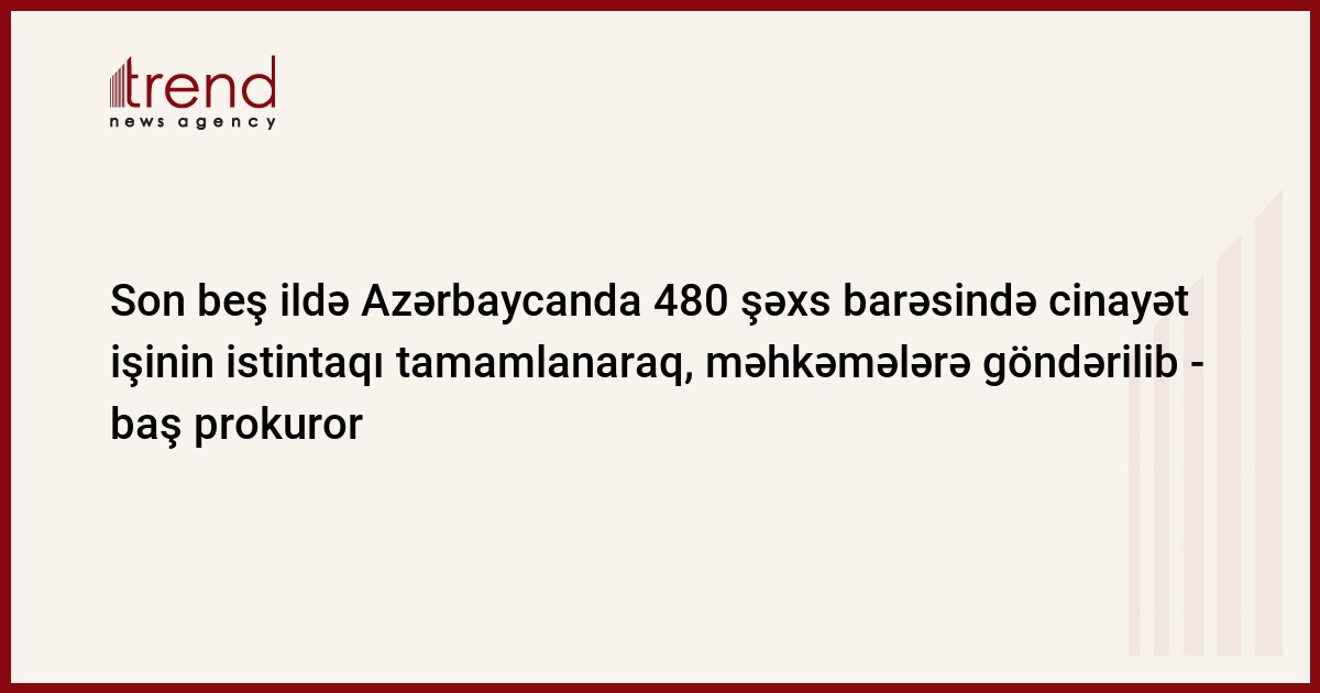 Son beş ildə Respublika Prokurorluğunda 480 şəxs barəsində 265 cinayət işinin istintaqı tamalanaraq, aidiyyəti üzrə məhkəmələrə göndərilib, - Trend-in məlumatına görə, bunu çərşənbə axşamı Parlamentdə çıxışı zamanı baş prokuror Zakir Qaralov bildirib.
