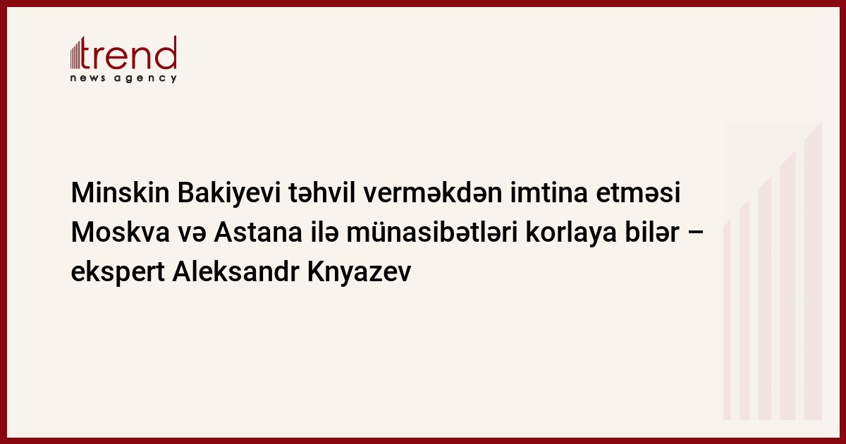 "Bakiyevin ekstradisiyasından imtina Minskin hələ Bişkək bir tərəfə qalsın, Moskva və Astana ilə onsuz da yaxşı olmayan münasibətlərini ciddi şəkildə poza bilər", - Knyazev elektron poçt vasitəsilə Trend-ə bildirib.