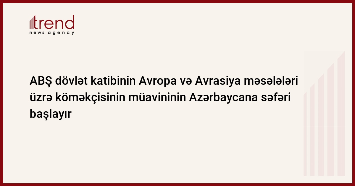 ABŞ dövlət katibinin Avropa və Avrasiya məsələləri üzrə köməkçisinin müavini səfir Tina Kaydanaunun Azərbaycana səfəri başlayır.