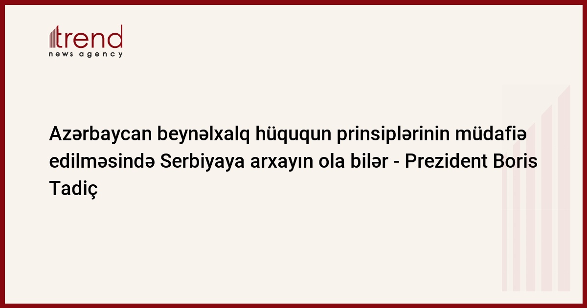 Siz çoxtərəfli təsisatlarda beynəlxalq hüququn prinsiplərinin müdafiə edilməsində bizə arxayın ola bilərsiniz. Bu, prinsipial məsələdir, bunu Prezident Boris Tadiç cümə axşamı Azərbaycan-Serbiya sənədlərinin imzalanma mərasimi başa çatdıqdan sonra mətbuat qarşısında etdiyi bəyanatında deyib.