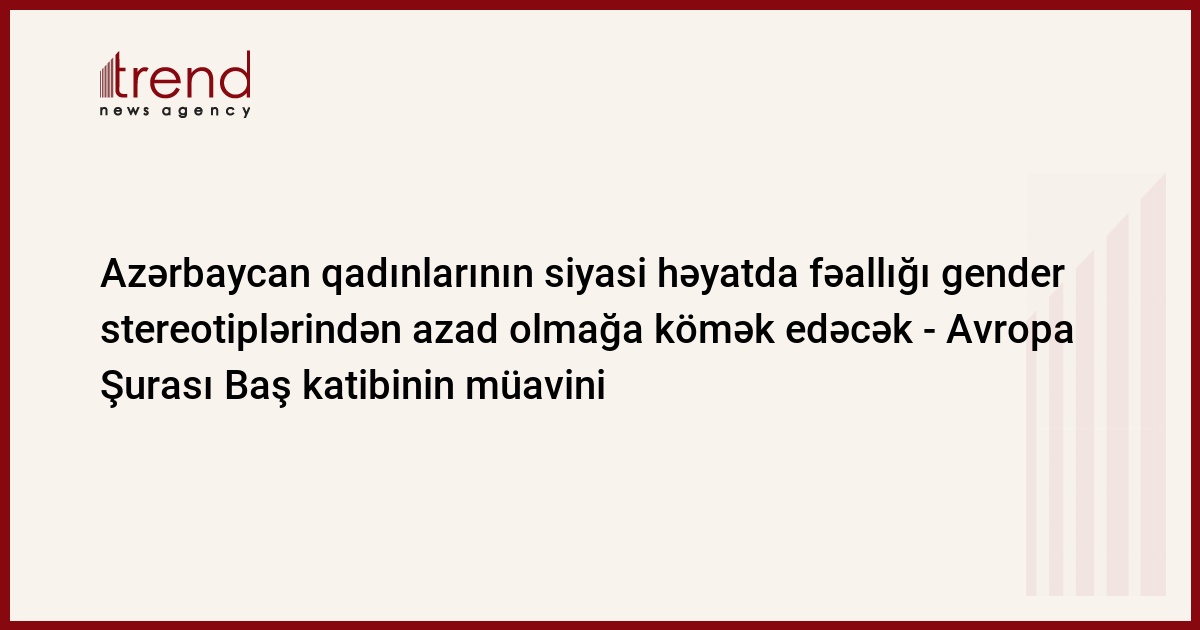 Qadınların fikrinin nəzərə alınması və onlara siyasi həyatda daha aktiv iştirak üçün kömək edilməsi Azərbaycanda gender stereotiplərinə qalib gəlməyə kömək edəcək. Avropa Şurası Baş katibinin müavini Mod de Bur Bukikkio belə hesab edir.