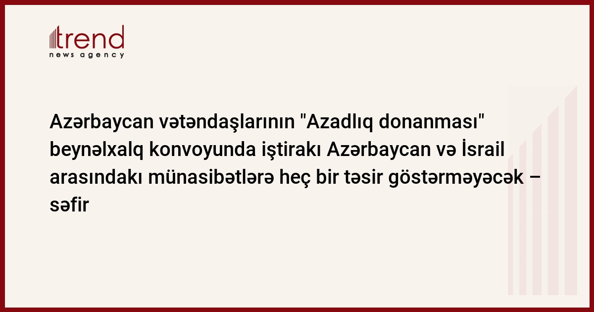 İki Azərbaycan vətəndaşının "Azadlıq donanması" beynəlxalq konvoyunda iştirakı Azərbaycan və İsrail arasındakı münasibətlərə heç bir təsir etmir. Bu barədə çərşənbə günü jurnalistlərə İsrailin Azərbaycandaki səfiri Mixail Lavokn-Lotem məlumat verib.