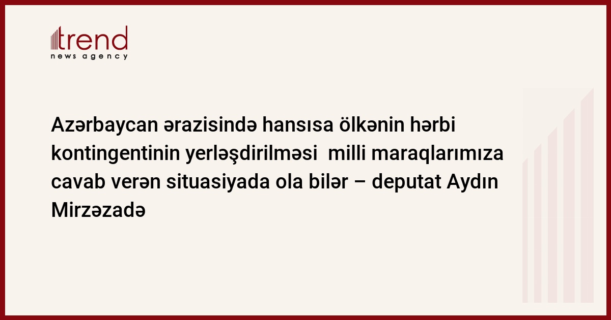 Azərbaycan Parlamentinin deputatı hesab edir ki, bu gün Azərbaycan ərazisində hər hansı bir ölkənin hərbi kontingentinin yerləşdirilməsinə ehtiyac yoxdur.