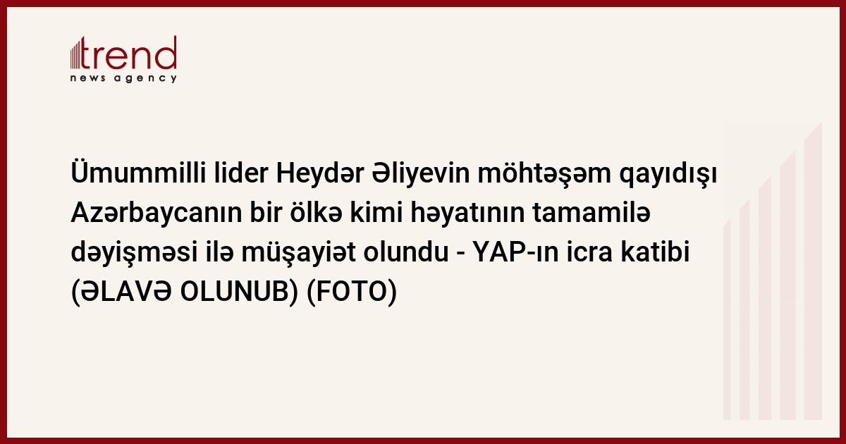"Azərbaycan xalqı xoşbəxtdir ki, 17 il öncə Heydər Əliyevin möhtəşəm qayıdışı ilə əsası qoyulan inkişafın böyük mərhələsini keçərək yüksələn, müasirləşən, yeniləşən bir Azərbaycan kimi özünü tanıda bilib. Azərbaycanın müasir tarixinin ən əzəmətli hadisəsi Heydər Əliyevin qayıdışında özünü ehtiva edən qurtuluş məfkurəsi ilə əlaqədardır. Bunun nəticəsidir ki, hər bir Azərbaycan vətəndaşı Heydər Əliyevin şəxsiyyətinə, siyasətinə bütün zamanlarda ehtiram və hörmət nümayiş etdirir", - YAP-ın icra katibi deyib.
