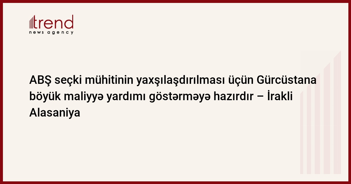 ABŞ ədalətli seçki mühitinin yaradılması məqsədilə Seçki Məcəlləsinə əlavə və dəyişiklik məsələsində Gürcüstana maliyyə yardımı göstərməyə hazırdır. Bu barədə "Rezonansi" qəzetinə müsahibəsində ABŞ-da səfərdə olan "Bizim Gürcüstan - azad demokratlar" partiyasının lideri İrakli Alasaniya bildirib.