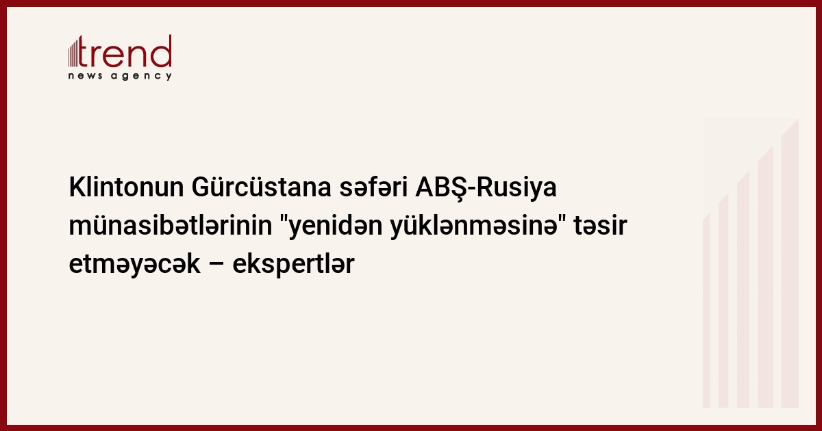 "ABŞ dövlət katibi Hillari Klintonun Cənubi Qafqaz ölkələrinə səfəri Vaşinqtonun regionun sabitliyində maraqlı olduğuna sübutdur", - ekspert Andro Barnov belə hesab edir. Məlumatı "Georgia online" yayıb.