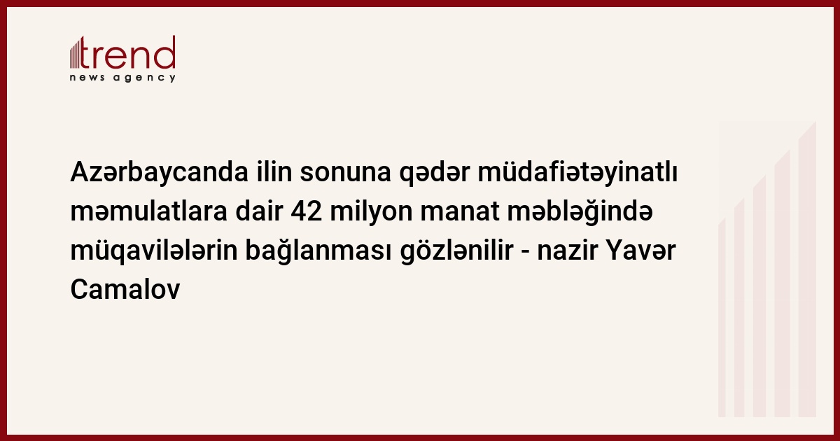 2010-cu ilin altı ayında müdafiətəyinatlı məmulatlara dair bağlanmış müqavilələrin həcmi 61,1 milyon manat təşkil edir. İlin sonunadək yaradılacaq müdafiətəyinatlı məmulatların seriyalı istehsalını təmin etməklə, əlavə olaraq, 42 milyon manat məbləğində müqavilələrin bağlanması gözlənilir, - bunu Nazirlər Kabinetində Prezidentin iştirakı ilə bu ilin altı ayının yekunlarına dair keçirilən müşavirədə Azərbaycan müdafiə sənayesi naziri Yavər Camalov bildirib.