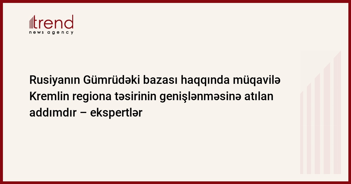 Ekspertlərin fikrincə, Gümrüdəki bazanın icarə müddətinin uzadılması, ilk növbədə, Rusiyanın regiondakı təsirinin möhkəmləndirilməsinə yönəlib.