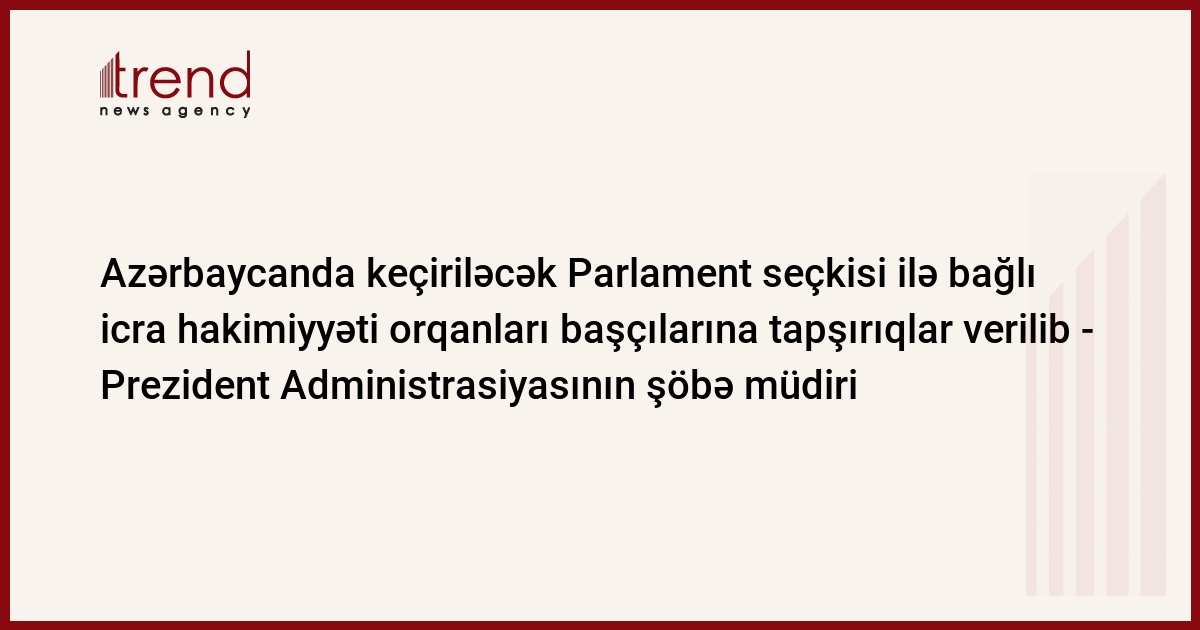 Azərbaycanda keçiriləcək Parlament seçkisi ilə bağlı icra hakimiyyəti orqanlarının başçılarına tapşırıqlar verilib.