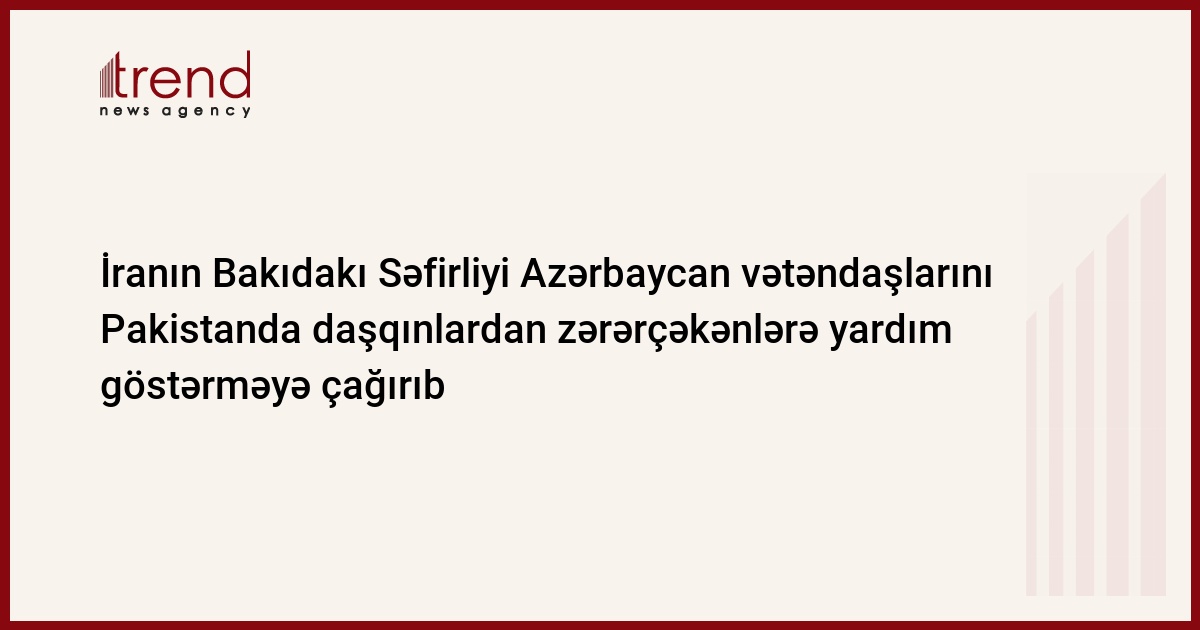 Məlumatda İranın Azərbaycandakı Səfirliyi ölkənin iş adamlarına, ticarət strukturlarına və sadə adamlarına daşqınlardan zərərçəkmiş pakistanlılara yardım göstərilməsi xahişi ilə müraciət edib.