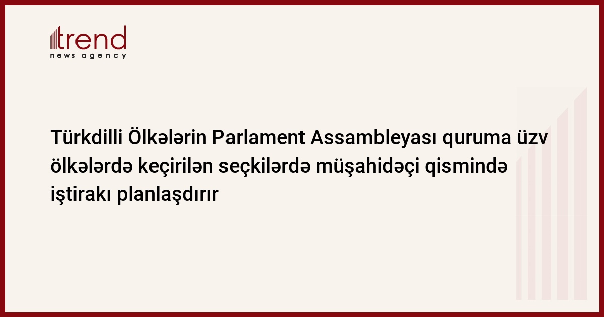 Türkdilli Ölkələrin Parlament Assambleyası (TÜRK PA) quruma üzv ölkələrdə keçirilən seçkilərdə müşahidəçi qismində iştirak etməyi planlaşdırır. Trend-in məlumatına görə, bu barədə çərşənbə günü jurnalistlərə TÜRK PA-nın baş katibi Ramil Həsənov bildirib.