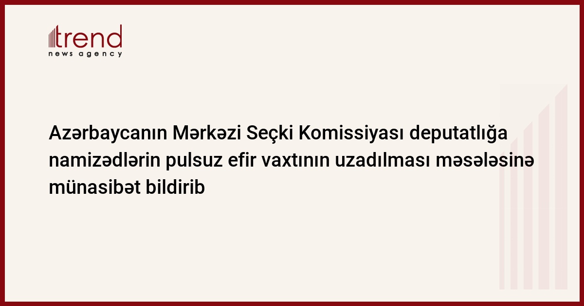 Azərbaycanın Mərkəzi Seçki Komissiyası (MSK) deputatlığa namizədlərin pulsuz efir vaxtının uzadılması məsələsinə münasibət bildirib.