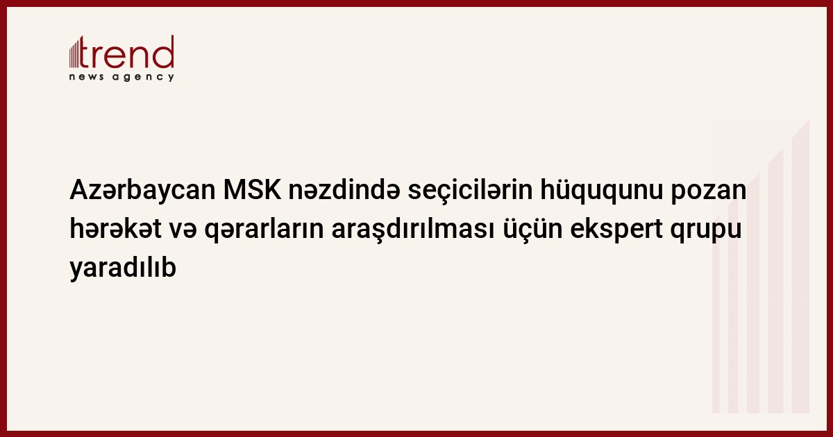 Azərbaycanın Mərkəzi Seçki Komissiyası (MSK) nəzdində vətəndaşların seçki hüququnu pozan hərəkətlərdən (hərəkətsizlikdən) qərarlardan şikayətlərin araşdırılması məqsədilə ekspert qrupu yaradılıb.