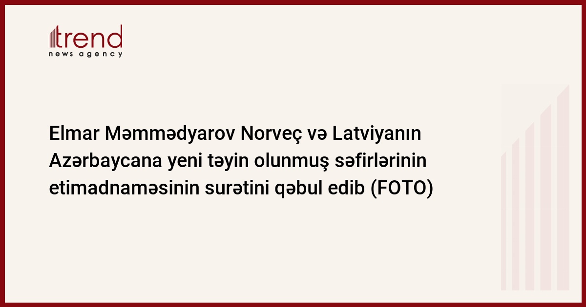 Həmin gün Məmmədyarov Latviya Respublikasının Azərbaycana yeni təyin olunmuş fövqəladə və səlahiyyətli səfiri Hardijs Baumanisi də qəbul edib.