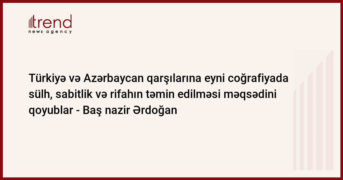 Türkiyə və Azərbaycan qarşılarına eyni coğrafiyada sülh, sabitlik və rifahın təmin edilməsi məqsədini qoyublar, Türkiyənin Baş naziri Rəcəb Tayyib Ərdoğan iki ölkə arasında yüksək səviyyəli strateji əməkdaşlıq şurasının qurulması haqqında birgə bəyannamənin imzalanma mərasimindən sonra deyib. Məlumatı AzərTAc Dövlət İnformasiya Agentliyi yayıb.