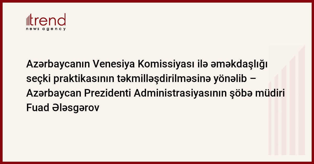 Azərbaycanın Venesiya Komissiyası ilə birgə həyata keçirdiyi bütün tədbirlər seçki praktikasının təkmilləşdirilməsinə, vətəndaşların hüquq və azadlıqlarının müdafiəsinə yönəlib. Bu barədə şənbə günü Azərbaycan Prezidenti Administrasiyasının hüquq-mühafizə orqanları ilə iş şöbəsinin müdiri Fuad Ələsgərov Ali Məhkəmədə Venesiya Komissiyasının nümayəndələri ilə birgə keçirilən Milli Məclisə seçkilərə həsr olunmuş beynəlxalq konfransda deyib.