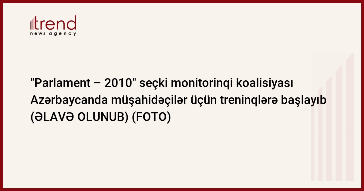 Cümə günü "Parlament - 2010" seçki monitorinqi koalisiyası Azərbaycanda keçiriləcək Parlament seçkilərində müşahidəçilər missiyası üçün treninqlər keçirməyə başlayıb.
