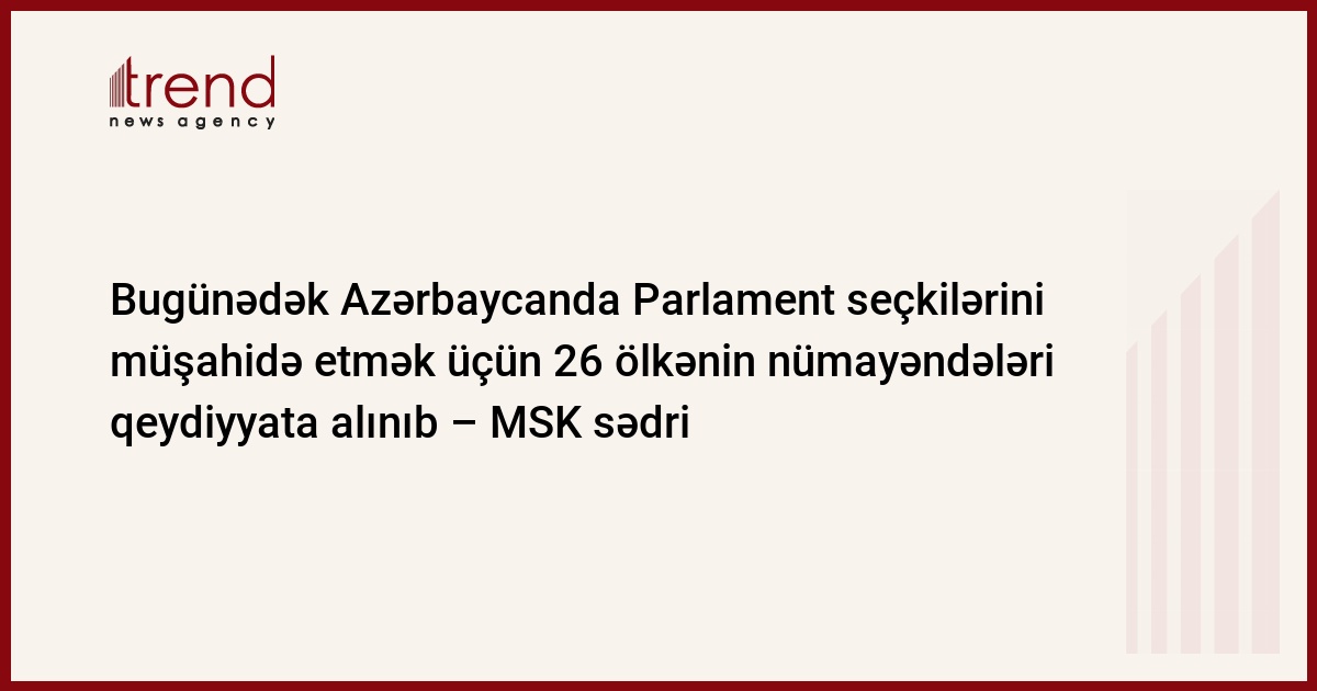 Bugünədək Azərbaycanda Parlament seçkilərinin müşahidə olunması üçün 26 ölkənin nümayəndələri qeydiyyata alınıb. Bu barədə çərşənbə axşamı Mərkəzi Seçki Komissiyasının (MSK) iclasında qurumun sədri Məzahir Pənahov bildirib.