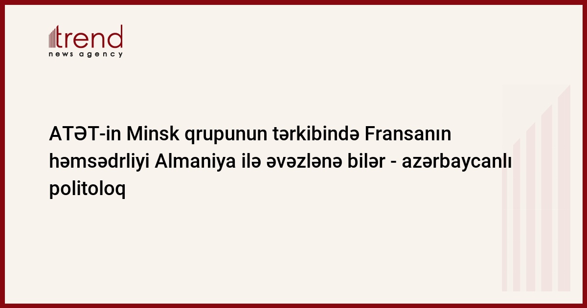 ATƏT-in Minsk qrupunun tərkibində Fransanın həmsədrliyi Almaniya ilə əvəzlənə bilər. Bu barədə çərşənbə günü jurnalistlərə politoloq, Siyasi İnnovasiya və Texnologiya Mərkəzinin direktoru Mübariz Əhmədoğlu bildirib.