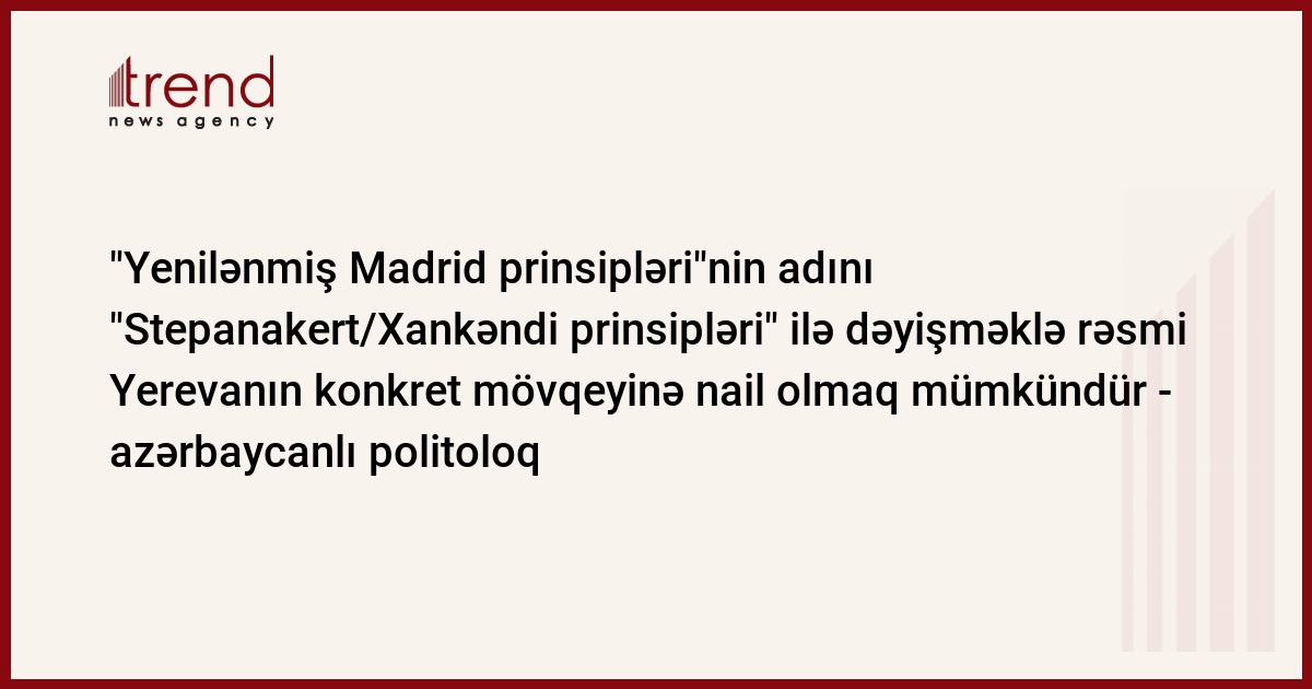 "ATƏT Minsk qrupunun həmsədrlərinin hazırladığı "Yenilənmiş Madrid prinsipləri" sənədinin adını "Stepanakert/Xankəndi prinsipləri" kimi dəyişməklə rəsmi Yerevanın konkret mövqeyinə nail olmaq mümkündür", - Əhmədoğlu əlavə edib.