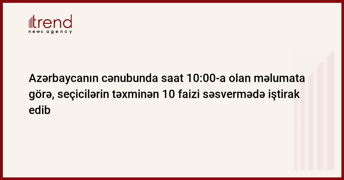 Azərbaycanın cənubunda saat 10:00-a olan məlumata görə, seçicilərin təxminən 10 faizi səsvermədə iştirak edib.