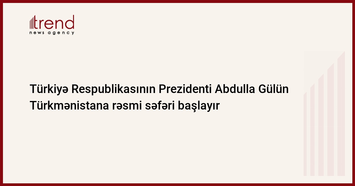 Türkiyə Respublikasının Prezidenti Abdulla Gülün noyabrın 11-də Türkmənistana iki günlük rəsmi səfəri başlayır. Bu barədə cümə axşamı Türkmənistan hökumətinin mətbuat xidmətindən məlumat verilib.