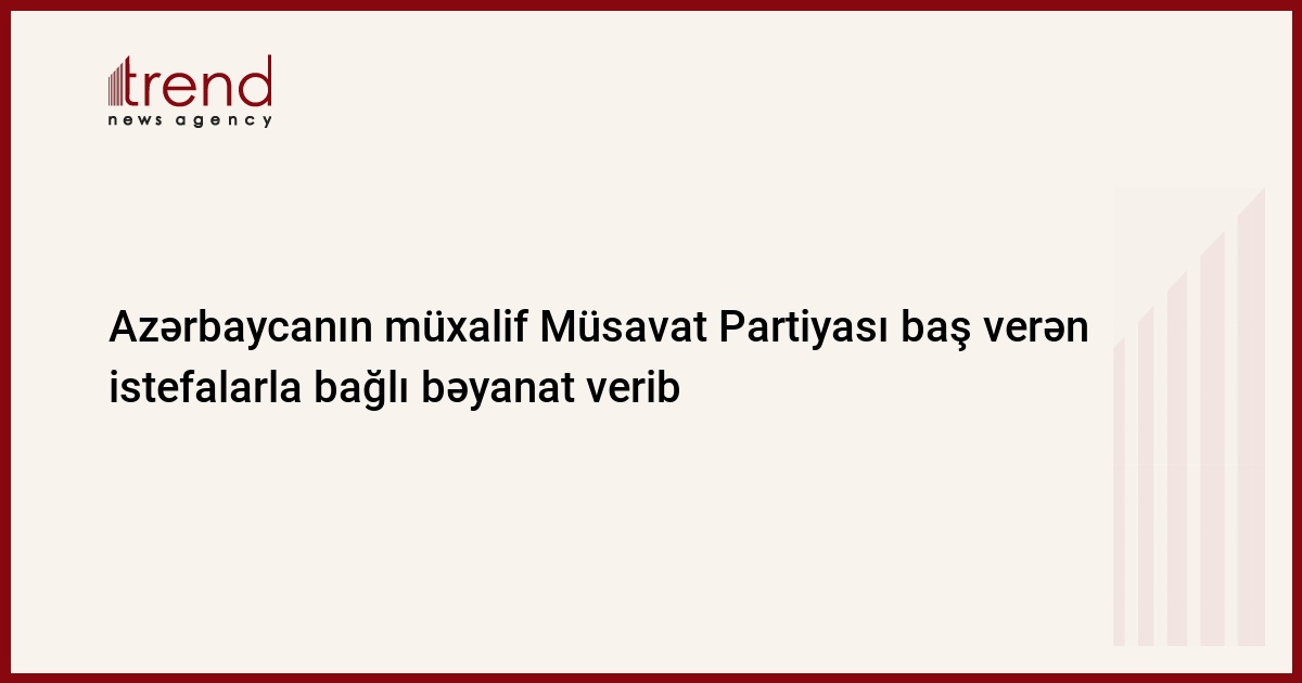 Azərbaycanın müxalif Müsavat Partiyası partiyanın Məclis sədri Sülhəddin Əkbərin və Divan üzvü İbrahim İbrahimlinin istefası ilə bağlı bəyanat verib. Bu barədə məlumatı çərşənbə günü partiyanın mətbuat xidməti yayıb.