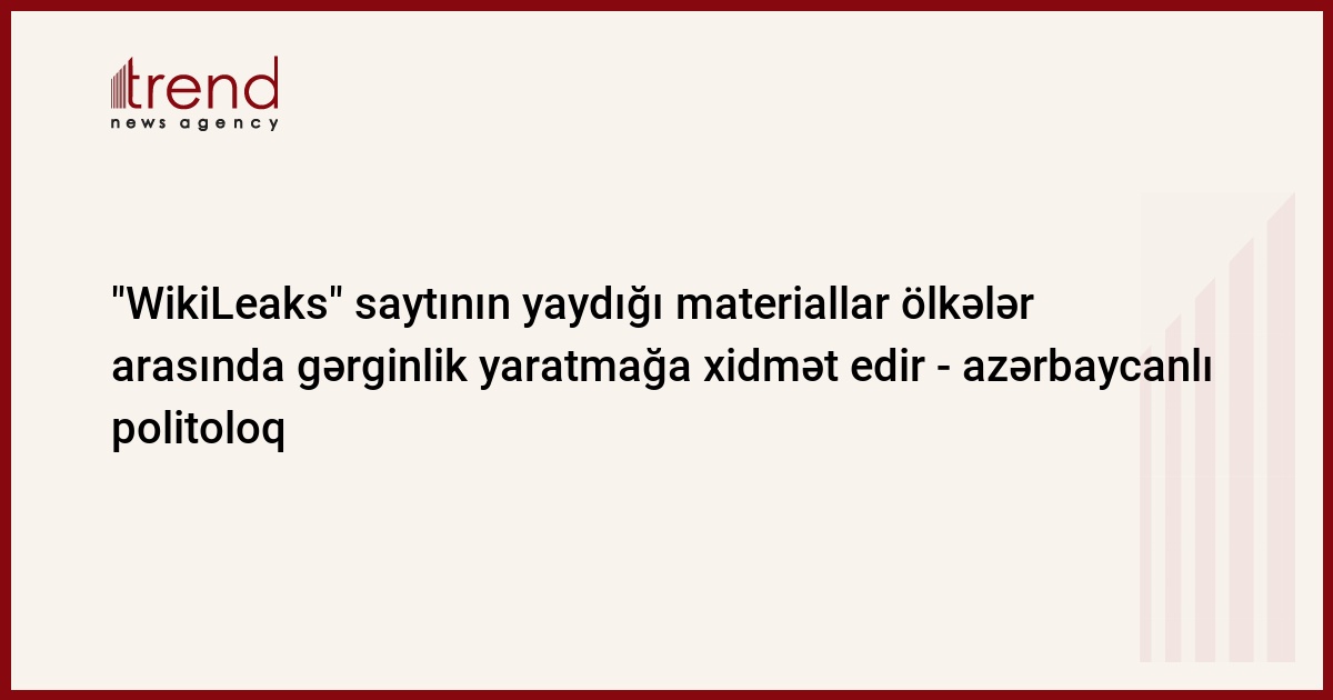 Azərbaycanın Siyasi İnnovasiya və Texnologiya Mərkəzinin rəhbəri hesab edir ki, "WikiLeaks" saytının yaydığı materiallar ölkələr arasında gərginlik yaratmağa xidmət edir.