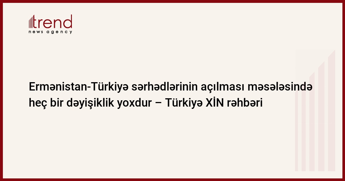 Ermənistan-Türkiyə sərhədlərinin açılması məsələsində heç bir dəyişiklik yoxdur. Bu barədə Türkiyənin xarici işlər naziri Əhməd Davudoğlu "Axşam" qəzetinə bildirib.